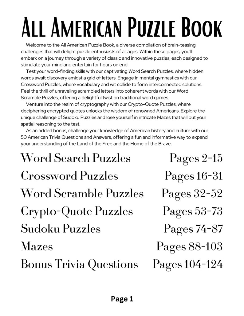 The All American Puzzle Book for Adults and Seniors Digital Download