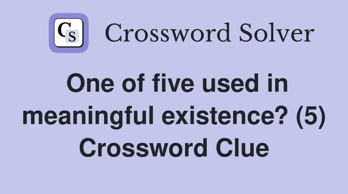 One of five used in meaningful existence? (5) Crossword Clue Answers