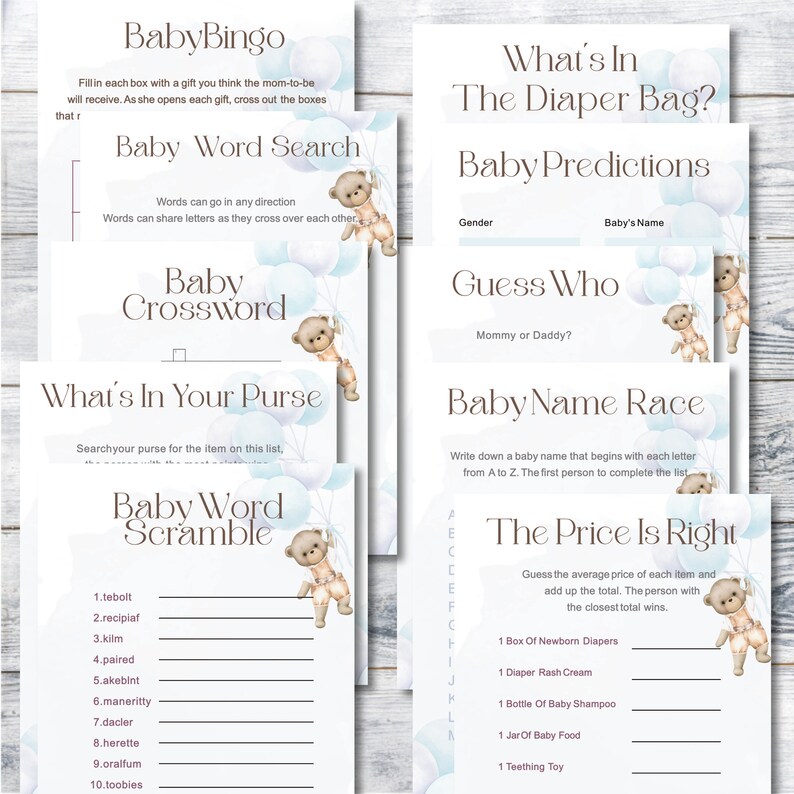 Bear Balloons Baby Shower Games Boy Baby Shower Printable Baby Shower