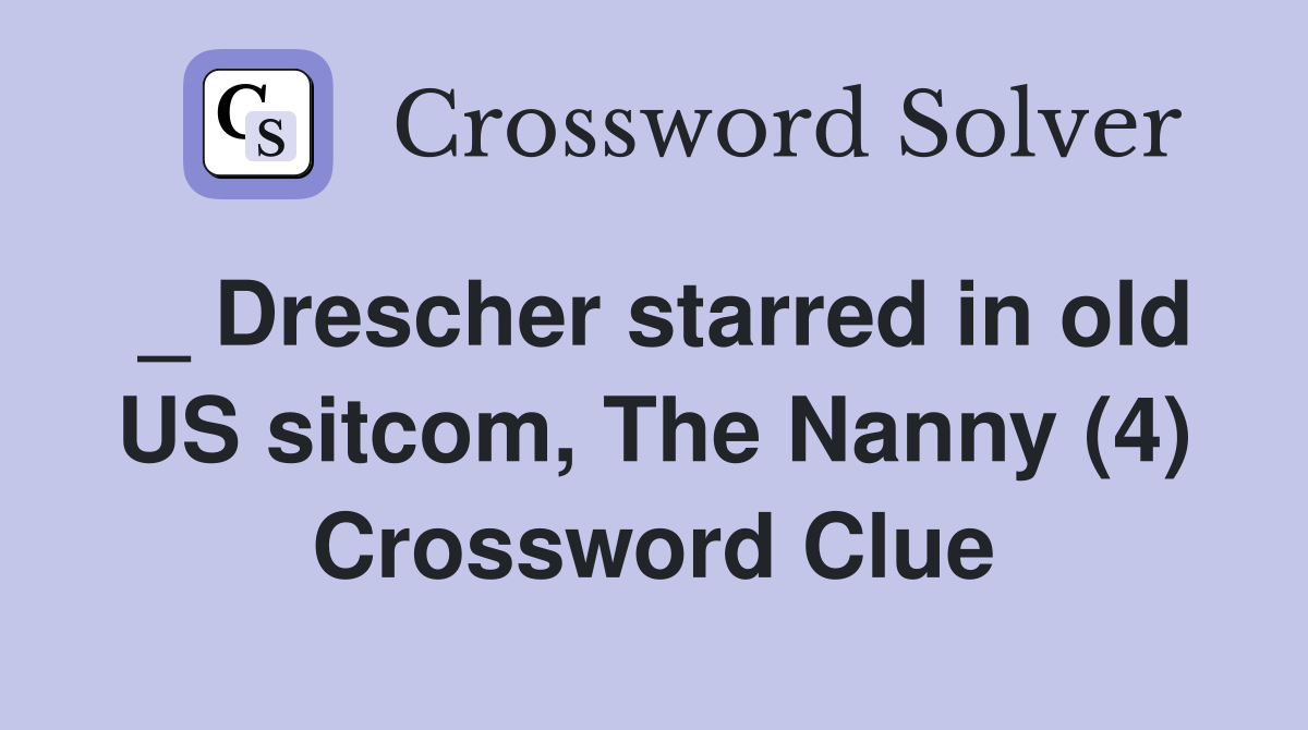 Drescher starred in old US sitcom The Nanny (4) Crossword Clue