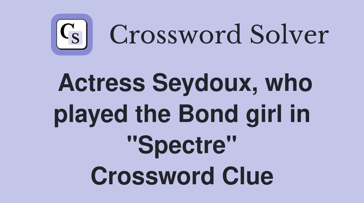 Actress Seydoux who played the Bond girl in quot Spectre quot Crossword Clue