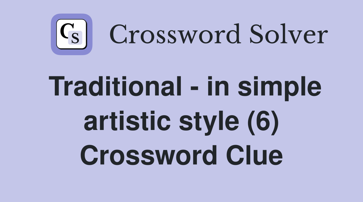 Traditional in simple artistic style (6) Crossword Clue Answers