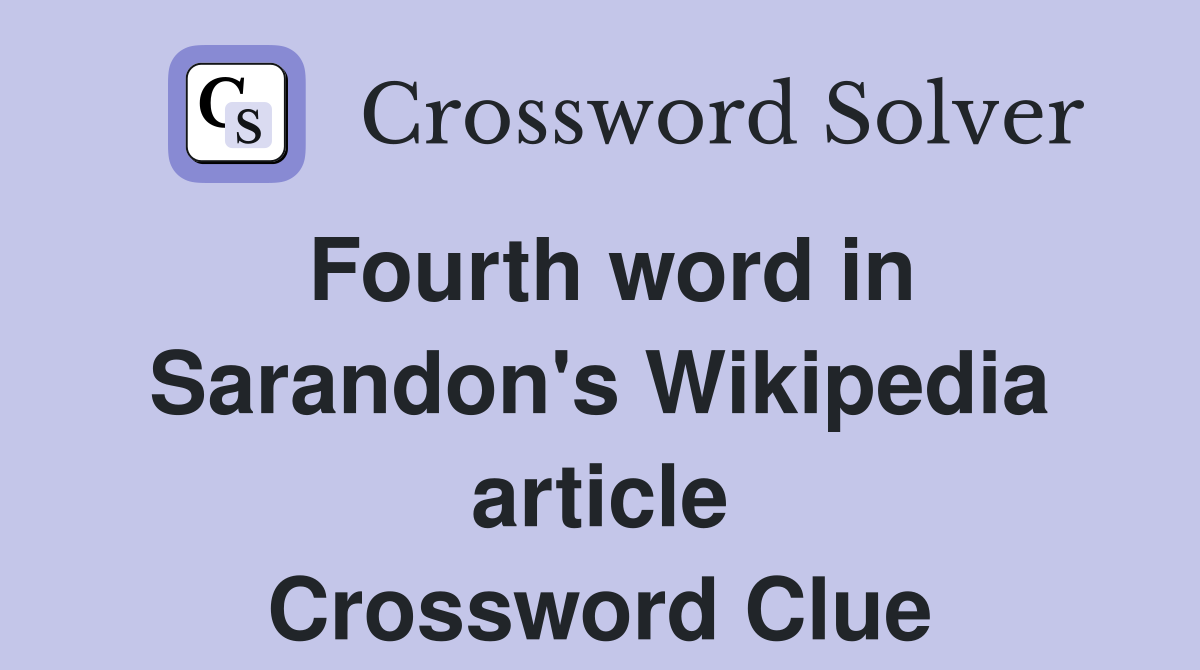 Fourth word in Sarandon #39 s Wikipedia article Crossword Clue Answers