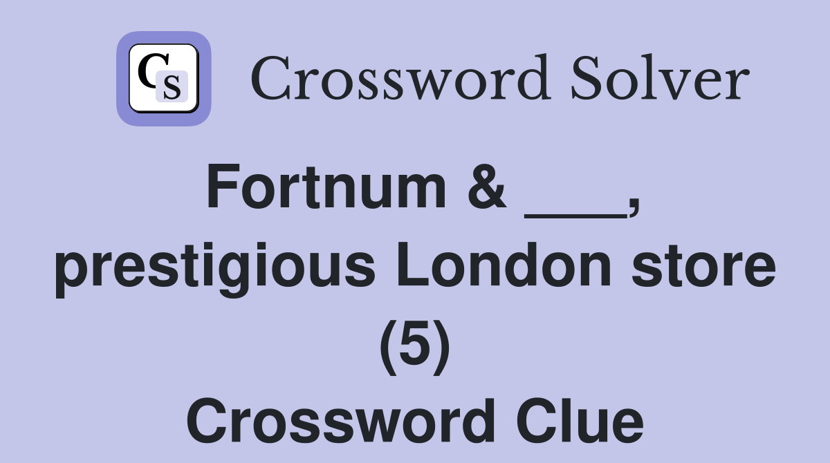 Fortnum prestigious London store (5) Crossword Clue Answers