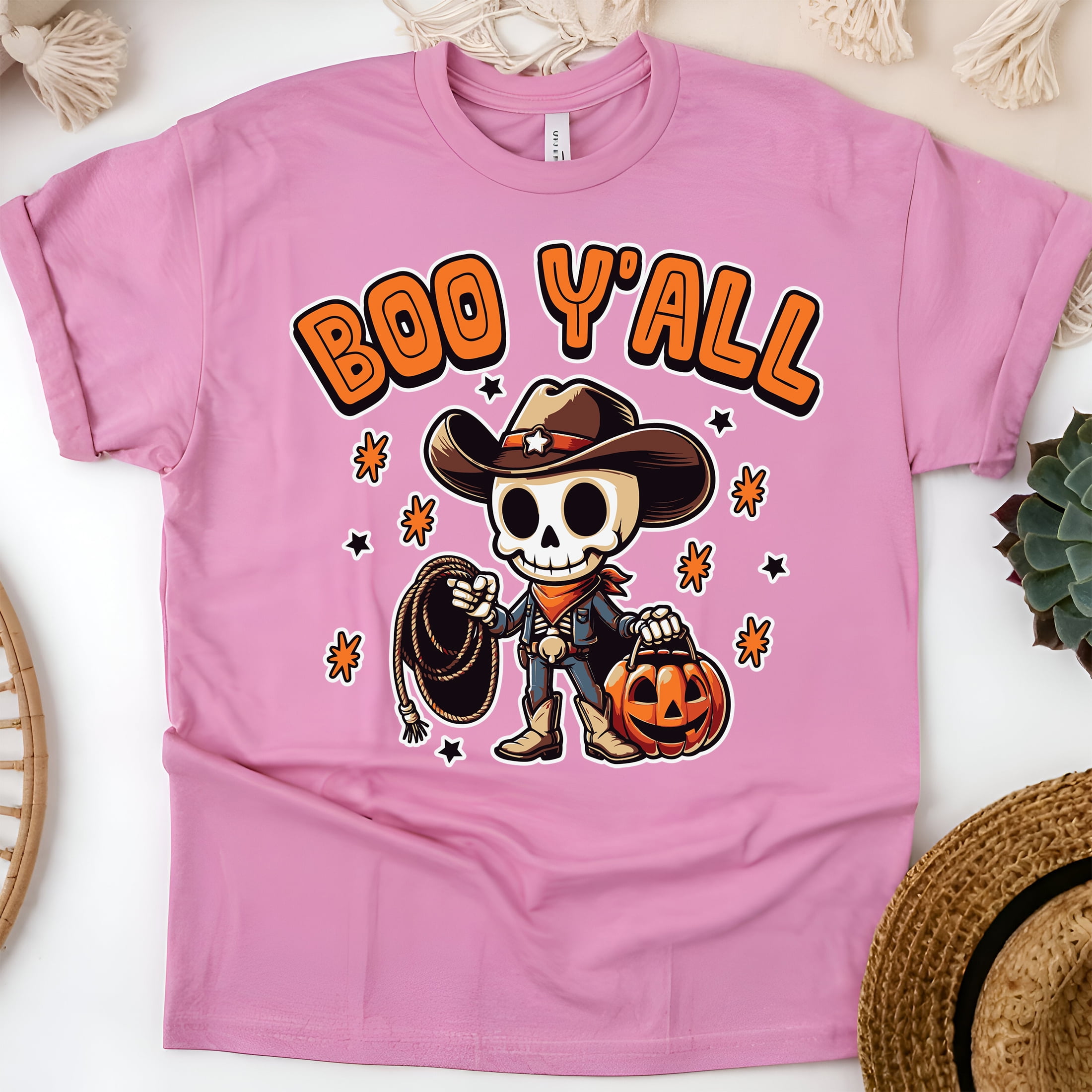 Boo Y all Shirt Cute Cowboy Skeleton Halloween Western Graphic Tee