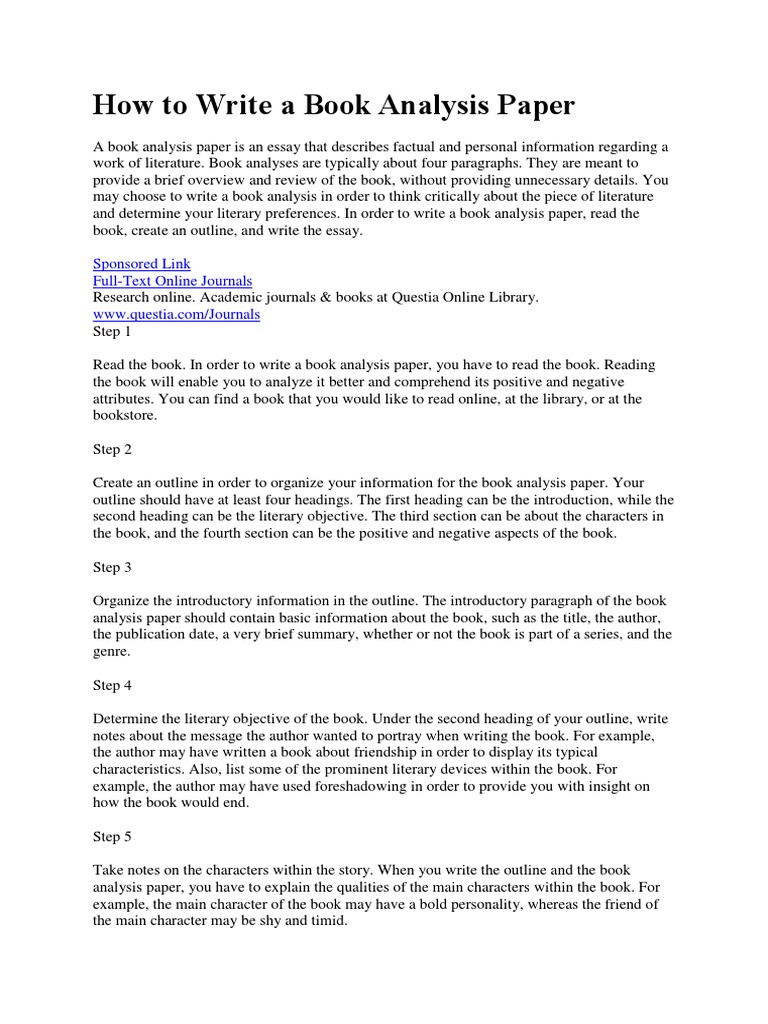 How To Write A Book Analysis Paper PDF Books Essays