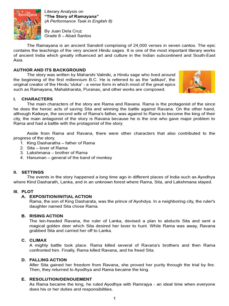Literary Analysis Template and Sample PDF Rama Sita