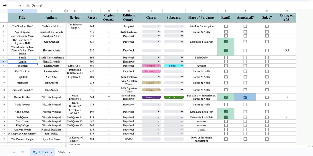 Personal Book Catalogue Template Etsy