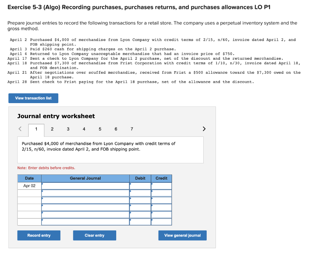 Solved Exercise 5 3 (Algo) Recording purchases purchases Chegg com