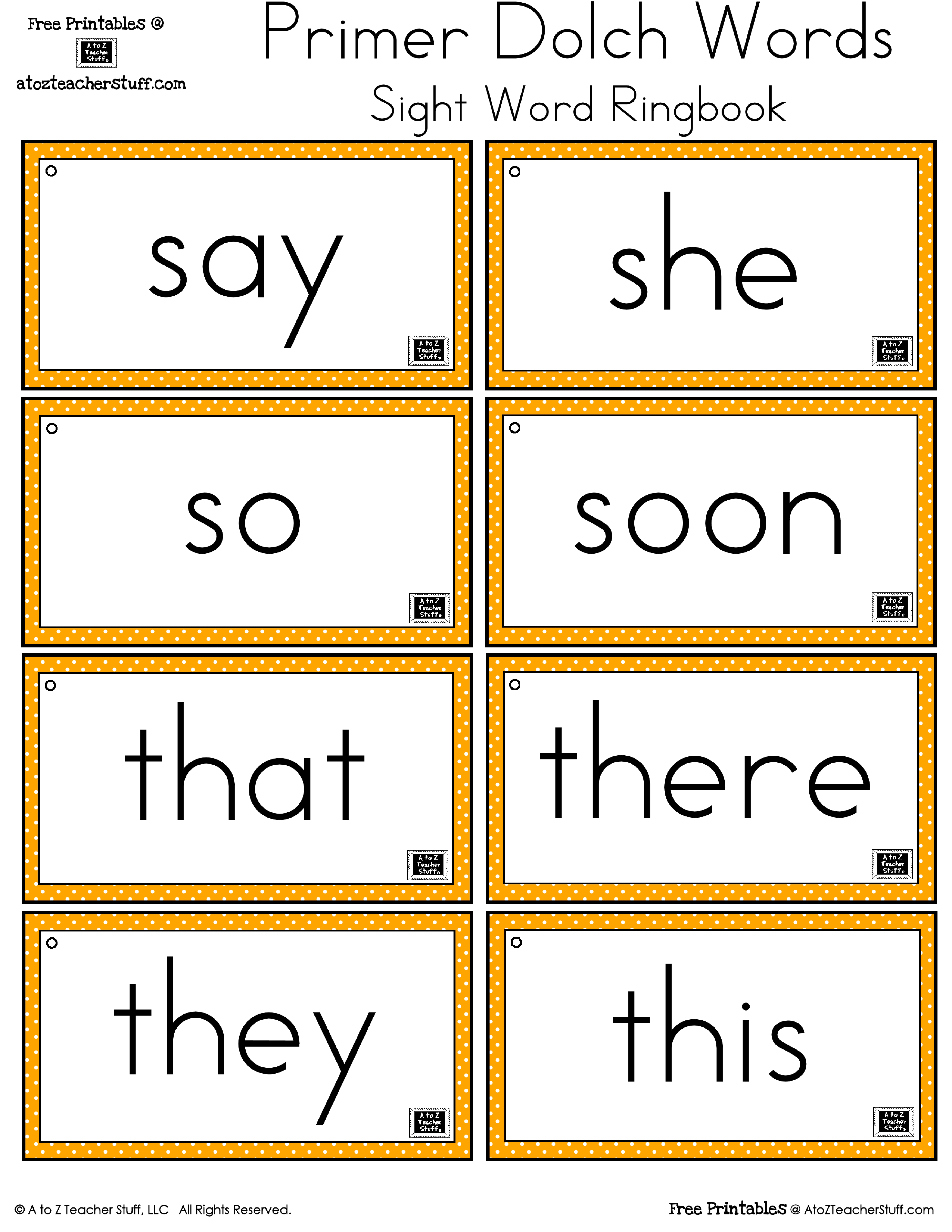 Primer Dolch Sight Words Ring Book A to Z Teacher Stuff