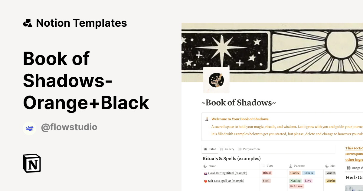 Book of Shadows Orange Black Template by flowstudio Notion Marketplace