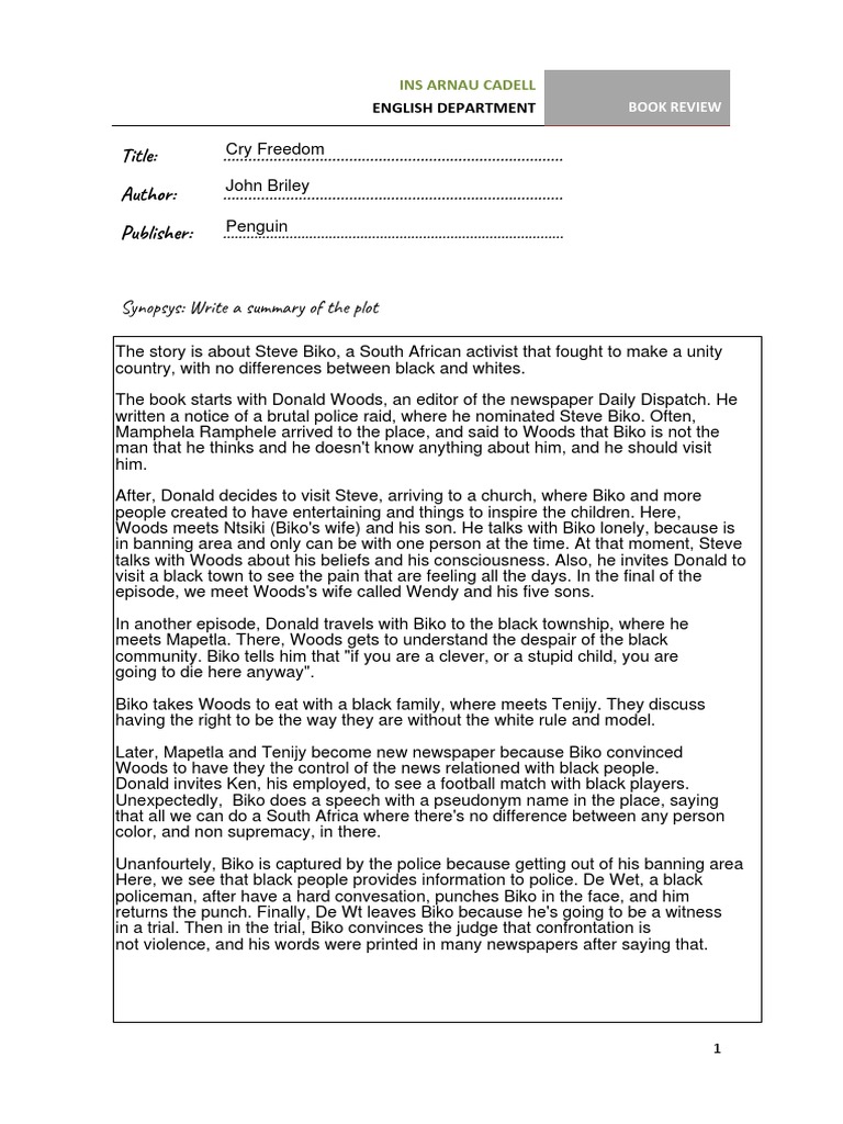 Basic Book Review Template English Parents