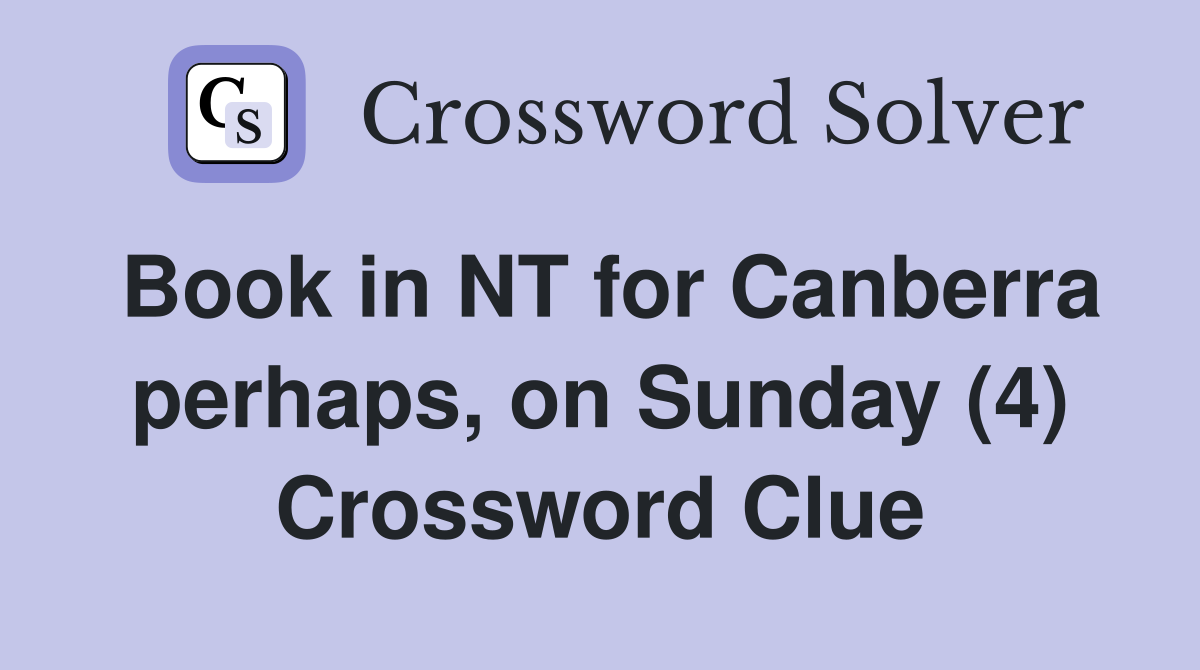 Book in NT for Canberra perhaps on Sunday (4) Crossword Clue Answers