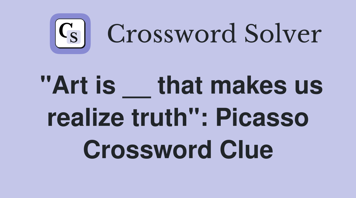quot Art is that makes us realize truth quot : Picasso Crossword Clue