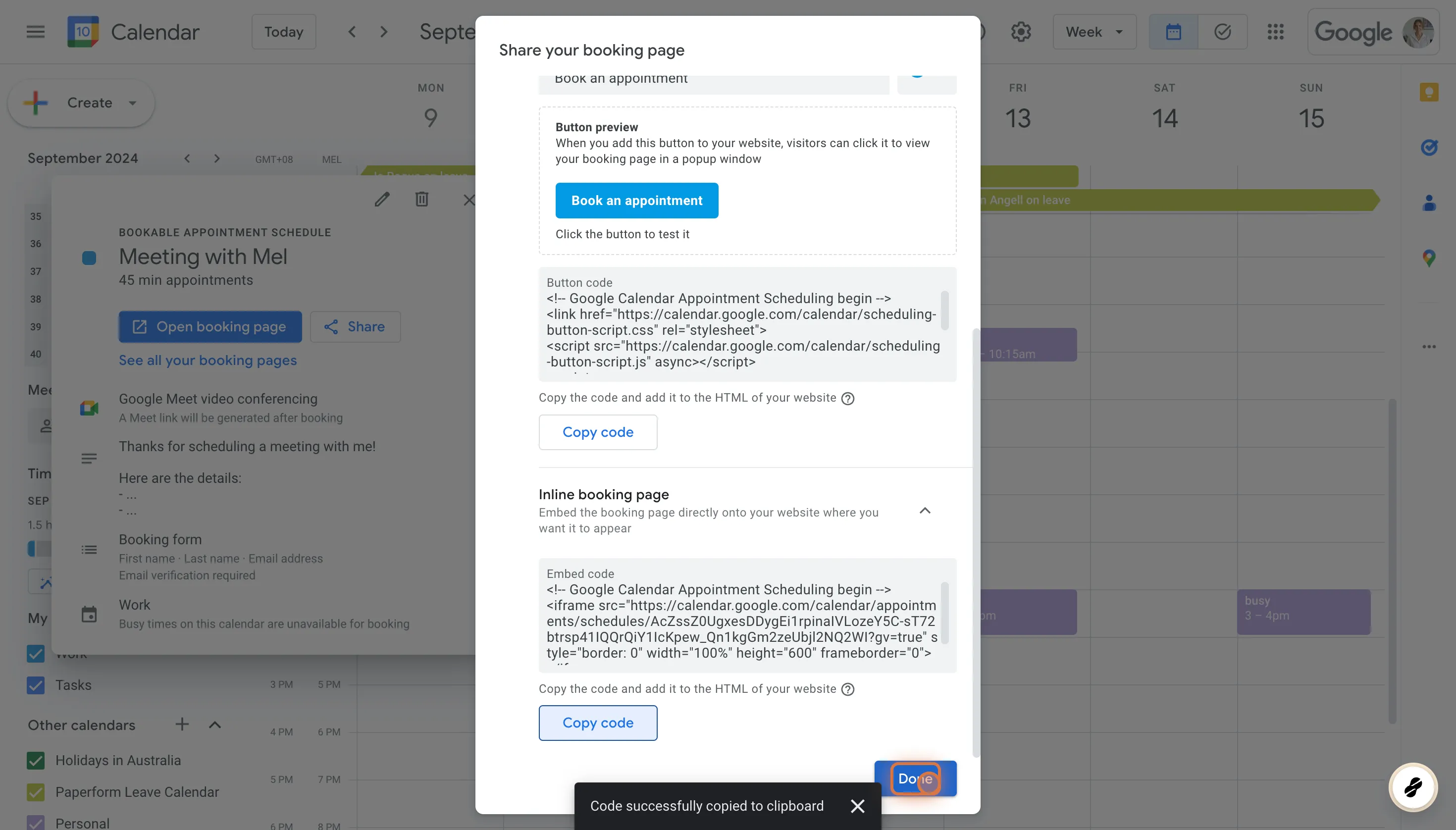 How to share a Google Calendar s Booking Page