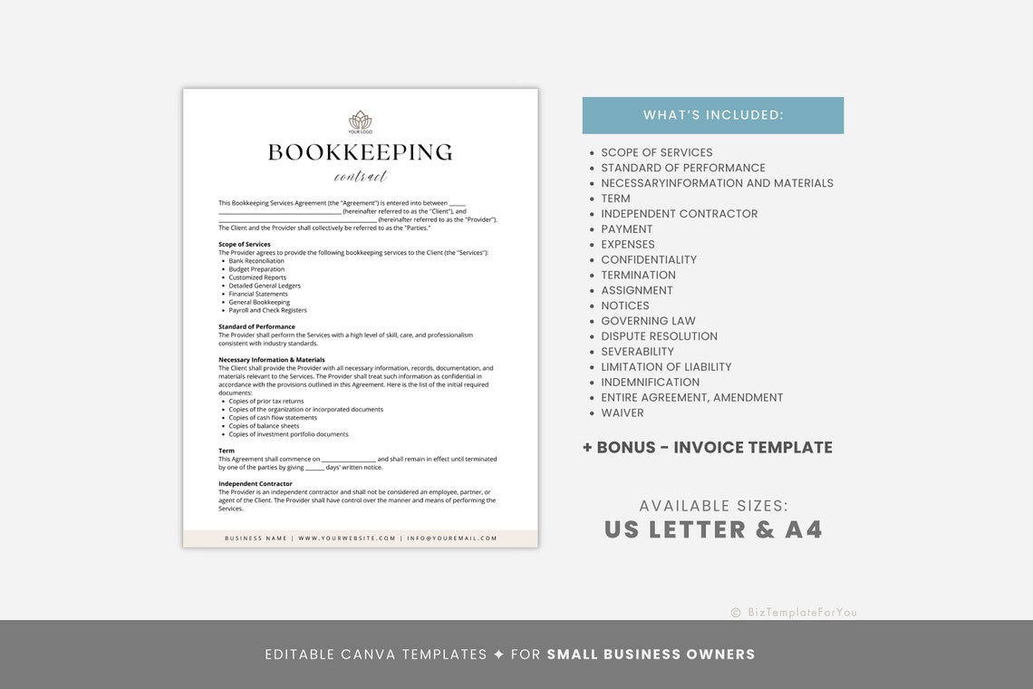 Bookkeeping Business New Client Bookkeeping Contract Invoice