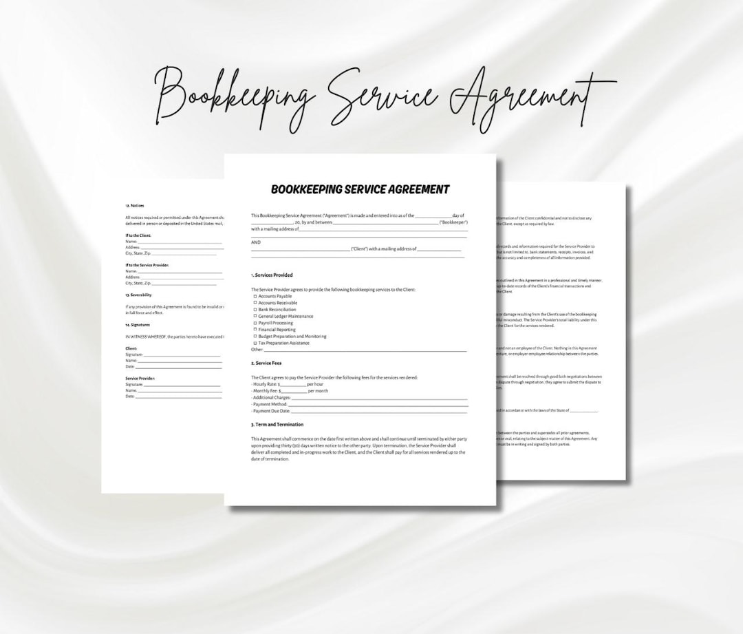 Bookkeeping Contract Bookkeeping Service Agreement Editable