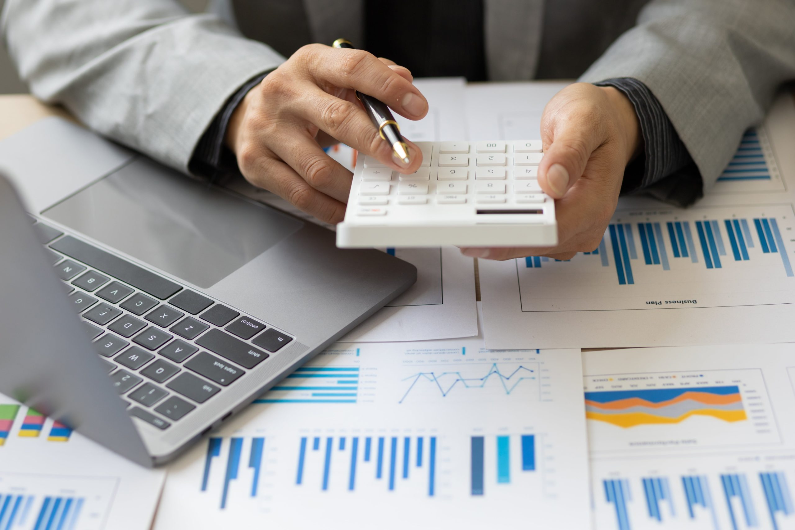 Premium Photo Businessman using calculator for analysis marketing plan