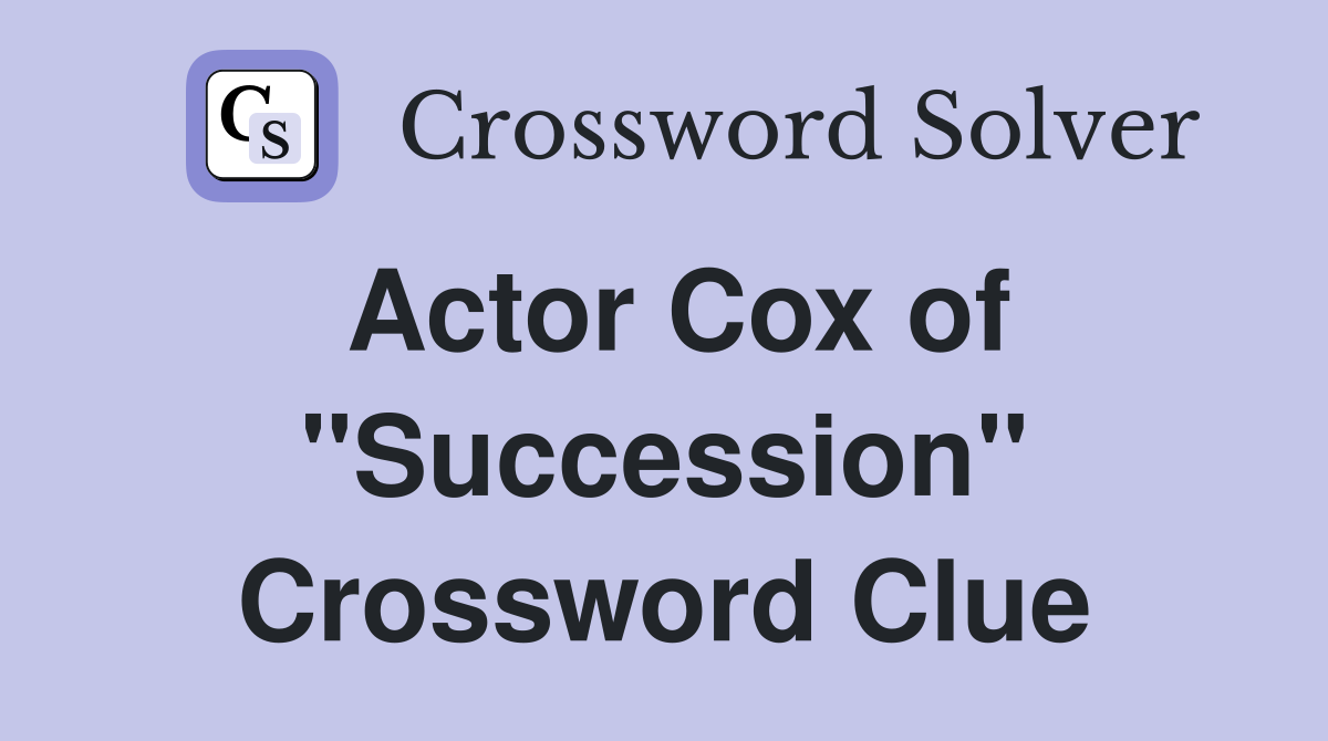 Actor Cox of quot Succession quot Crossword Clue Answers Crossword Solver