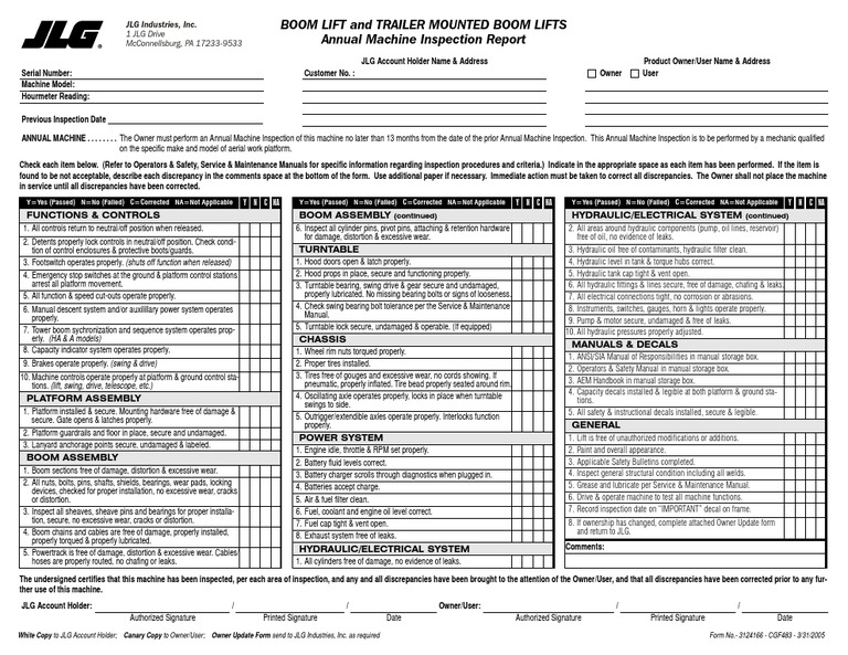 Genie Aerial Lift Annual Inspection Form Form : Resume Examples #