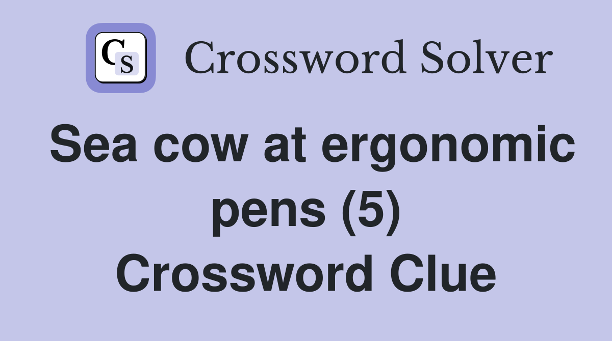 Sea cow at ergonomic pens (5) Crossword Clue Answers Crossword Solver