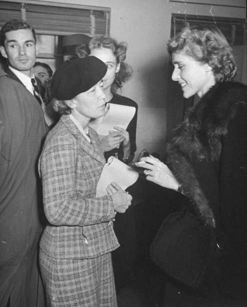 CLARE BOOTHE LUCE chatting with an unidentified woman 1940s Old Photo