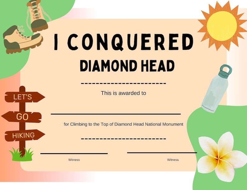 Printable Diamond Head Hike Certificate for Kids Hawaii Travel