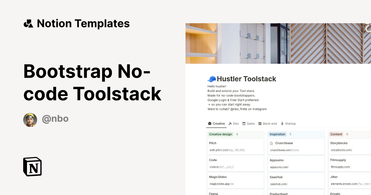 Bootstrap No code Toolstack Template Notion Marketplace