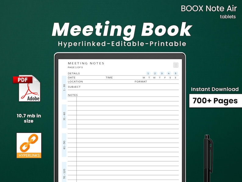 BOOX Note Air Templates Meeting Book Meeting Notes Hyperlinked PDF