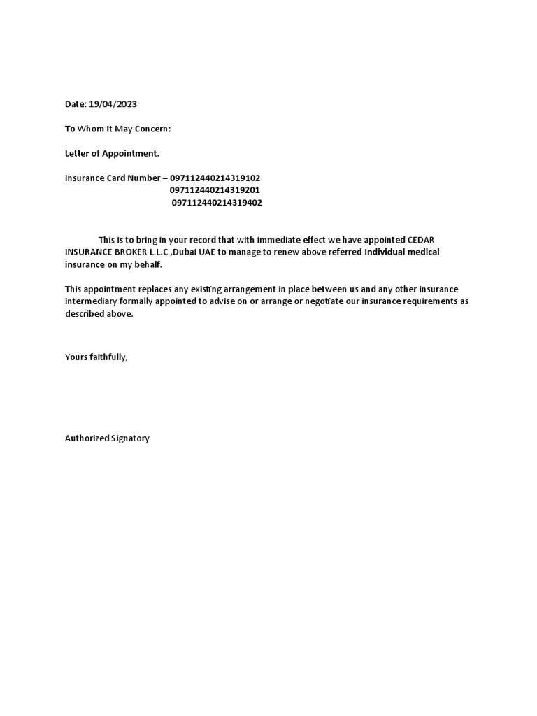 51 BOR Letter doc Sample Broker Of Record Letter Doc Template