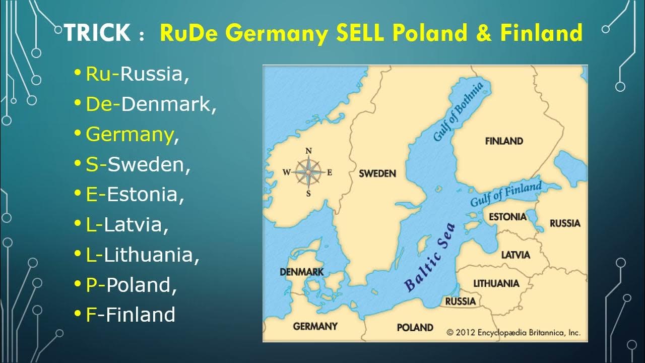 बाल्टिक सागर सीमा से सटे देशों को याद करने की ट्रिक Trick to Remember