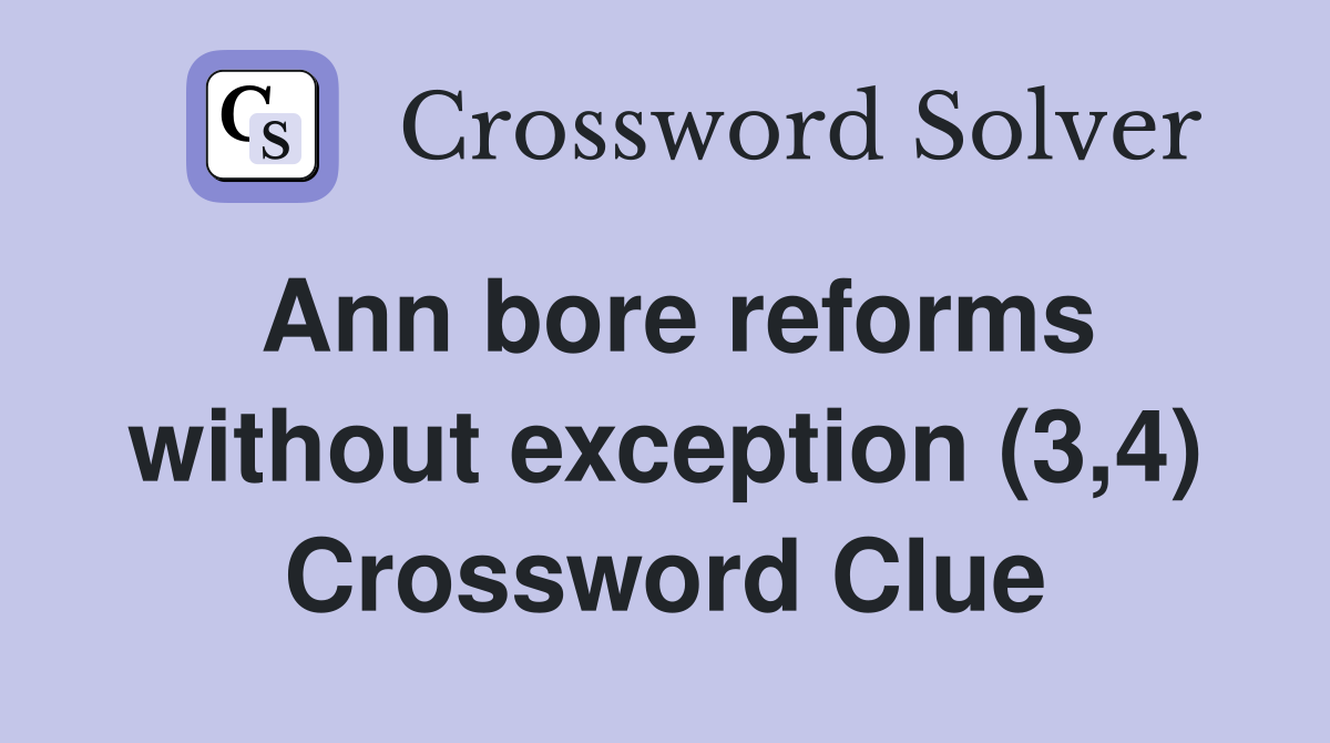 Ann bore reforms without exception (3 4) Crossword Clue Answers