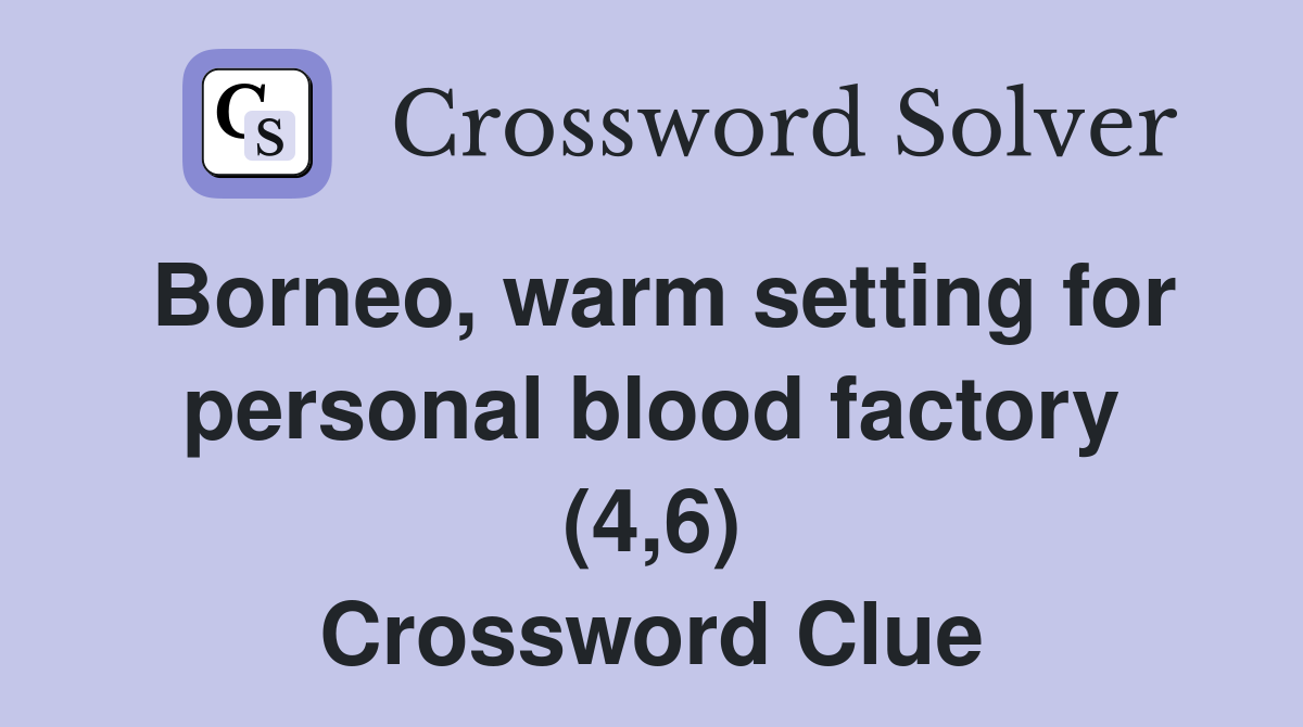 Borneo warm setting for personal blood factory (4 6) Crossword Clue