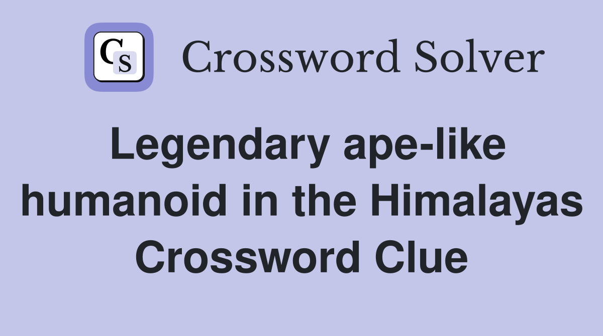 Legendary ape like humanoid in the Himalayas Crossword Clue Answers