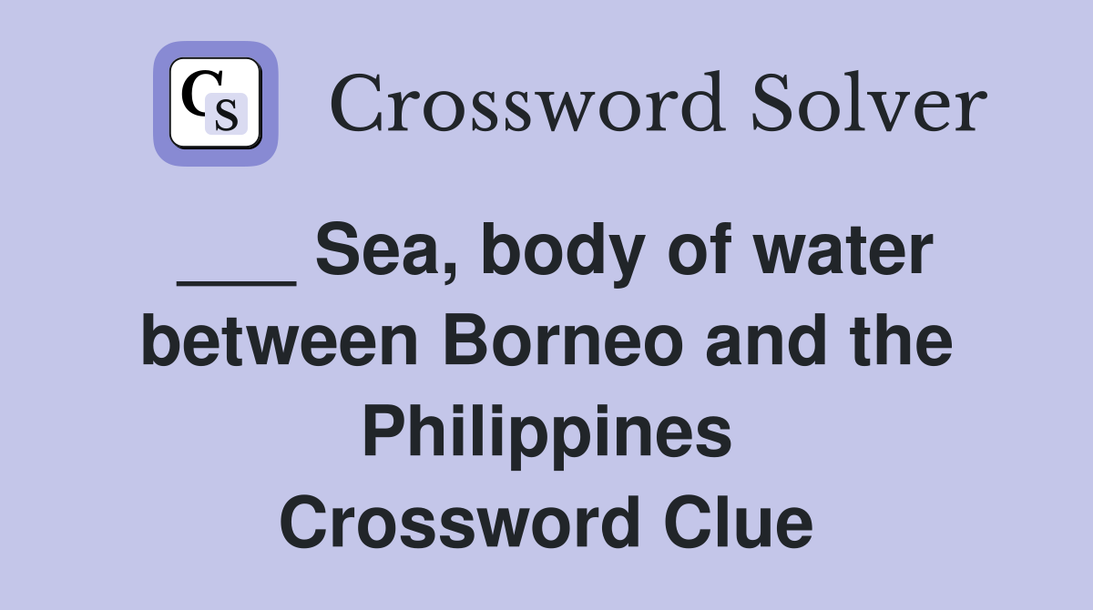 Sea body of water between Borneo and the Philippines Crossword Clue