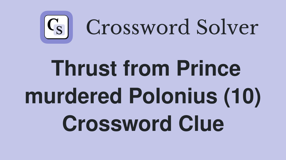Thrust from Prince murdered Polonius (10) Crossword Clue Answers