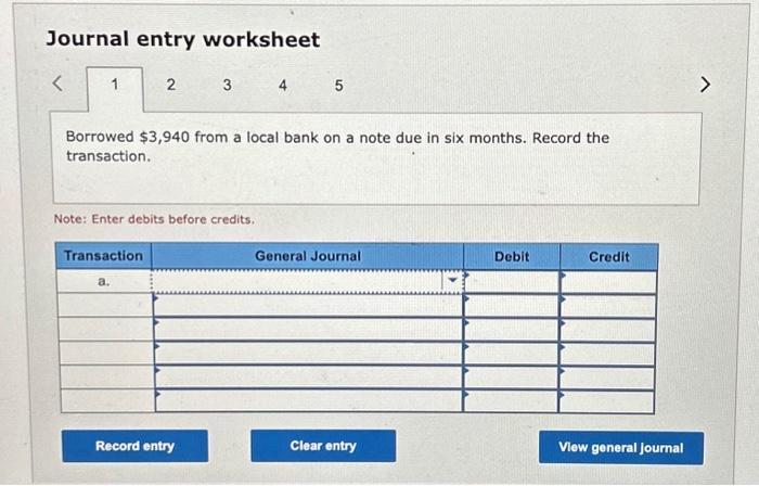 Solved Journal entry worksheet Borrowed $3 940 from a local Chegg com