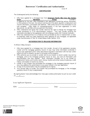 Fillable Online Borrowers #39 Certification and Authorization Mortgage