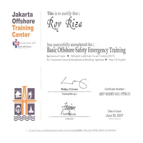 Yoshua Suandi on LinkedIn: This is my first BOSIET certificate