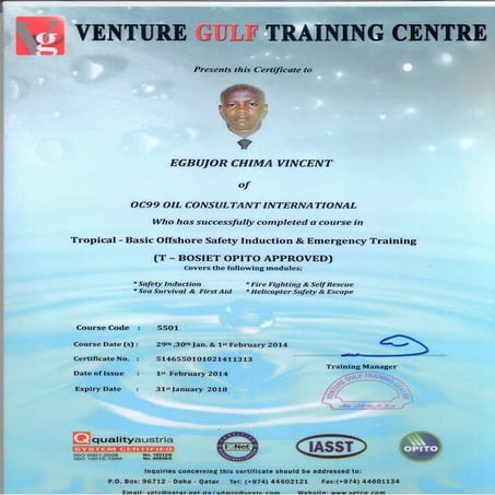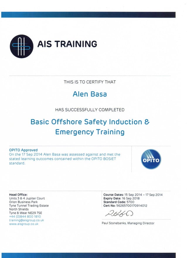 Antonio Gariffo on LinkedIn: OPITO BOSIET Certificate achieved 16