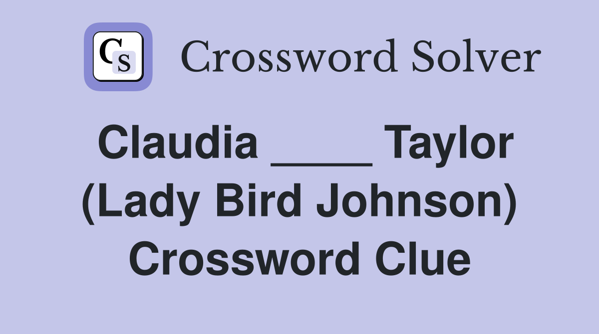 Claudia Taylor (Lady Bird Johnson) Crossword Clue Answers