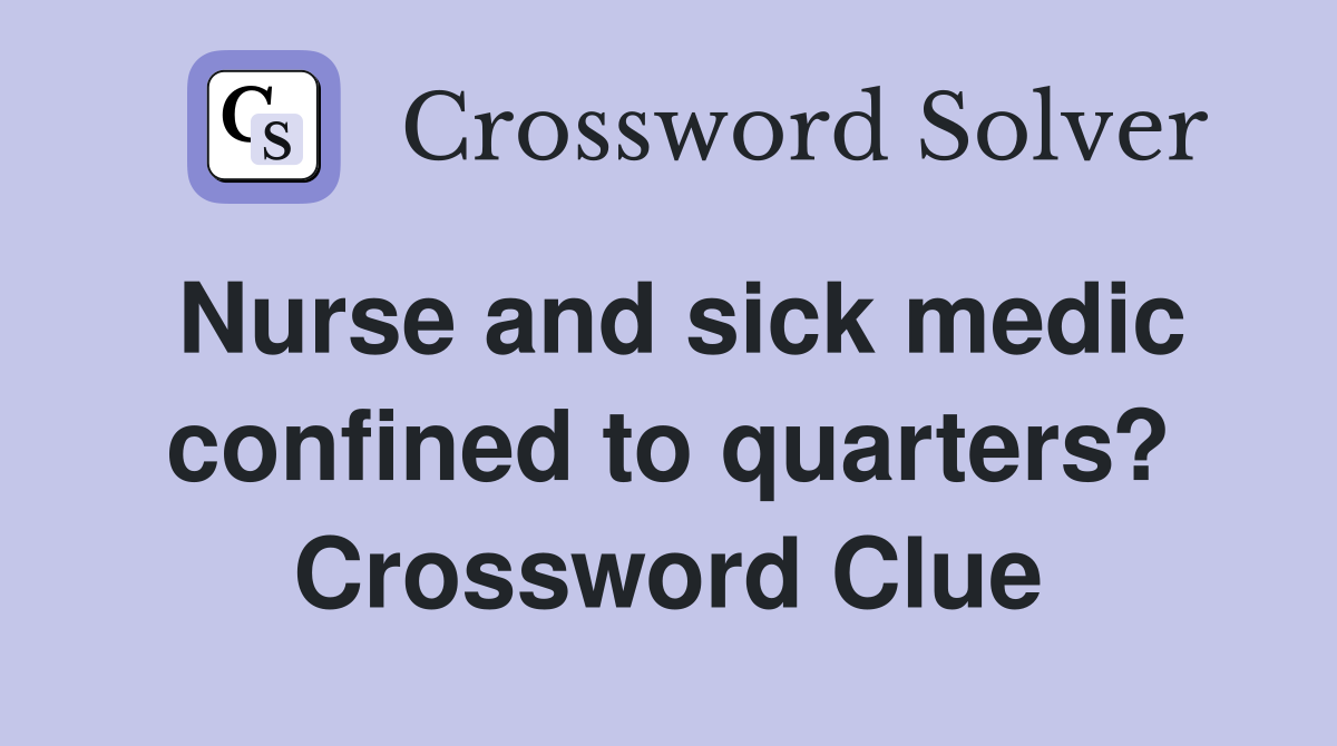 Nurse and sick medic confined to quarters? Crossword Clue Answers