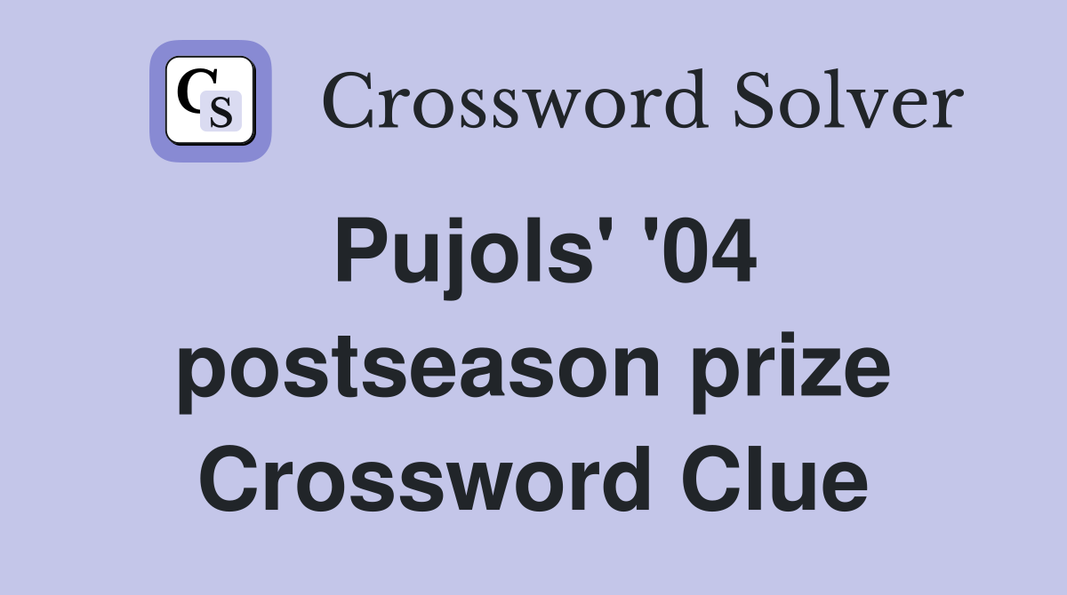 Pujols 04 postseason prize Crossword Clue Answers Crossword Solver