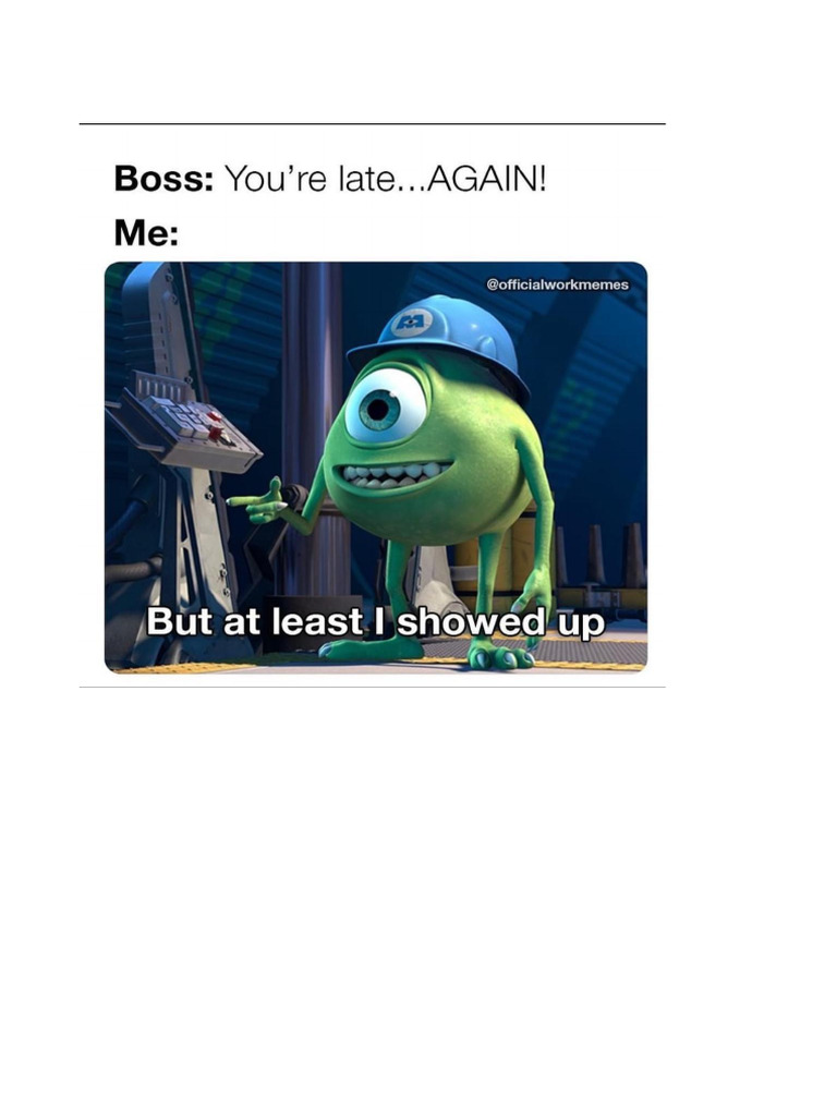 Me: Shows up one minute late My boss: Late is the hour in which this
