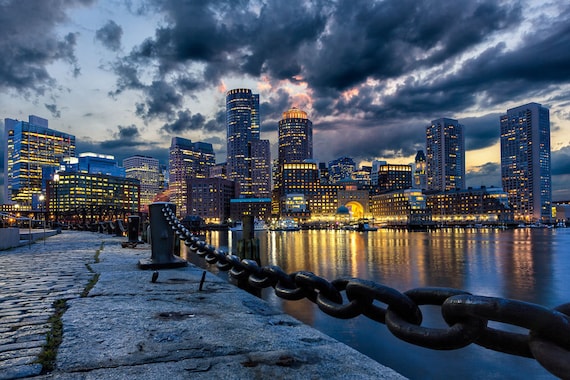 Boston Skyline Harbor Watercolor Canvas Boston Watercolor Etsy