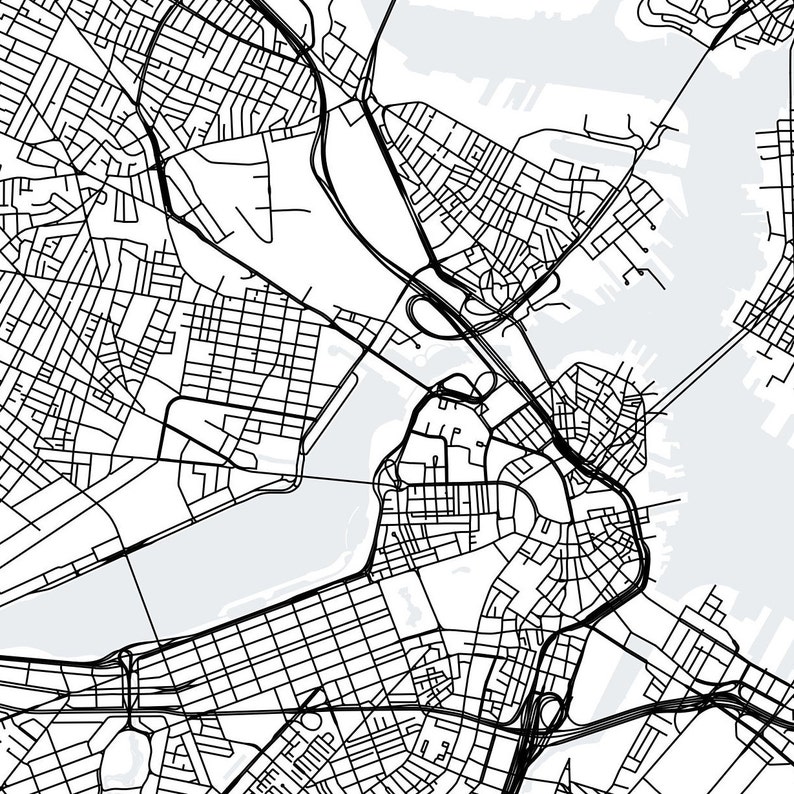 Boston Printable Map Boston Map Poster Boston Massachusetts Etsy