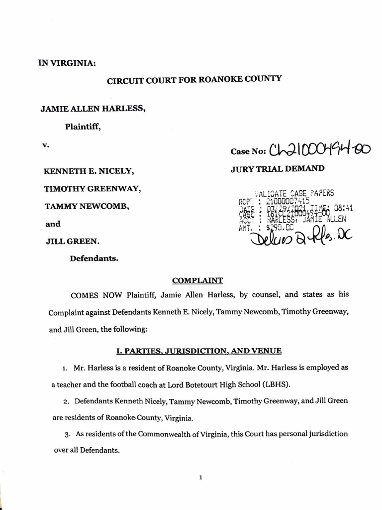 Lord Botetourt Football Coach Sues Roanoke County Leaders PDF