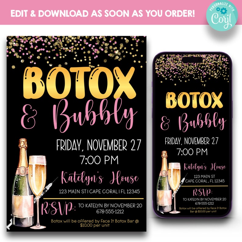 EDITABLE Botox Party Invitation Botox Bubbly Invite Etsy
