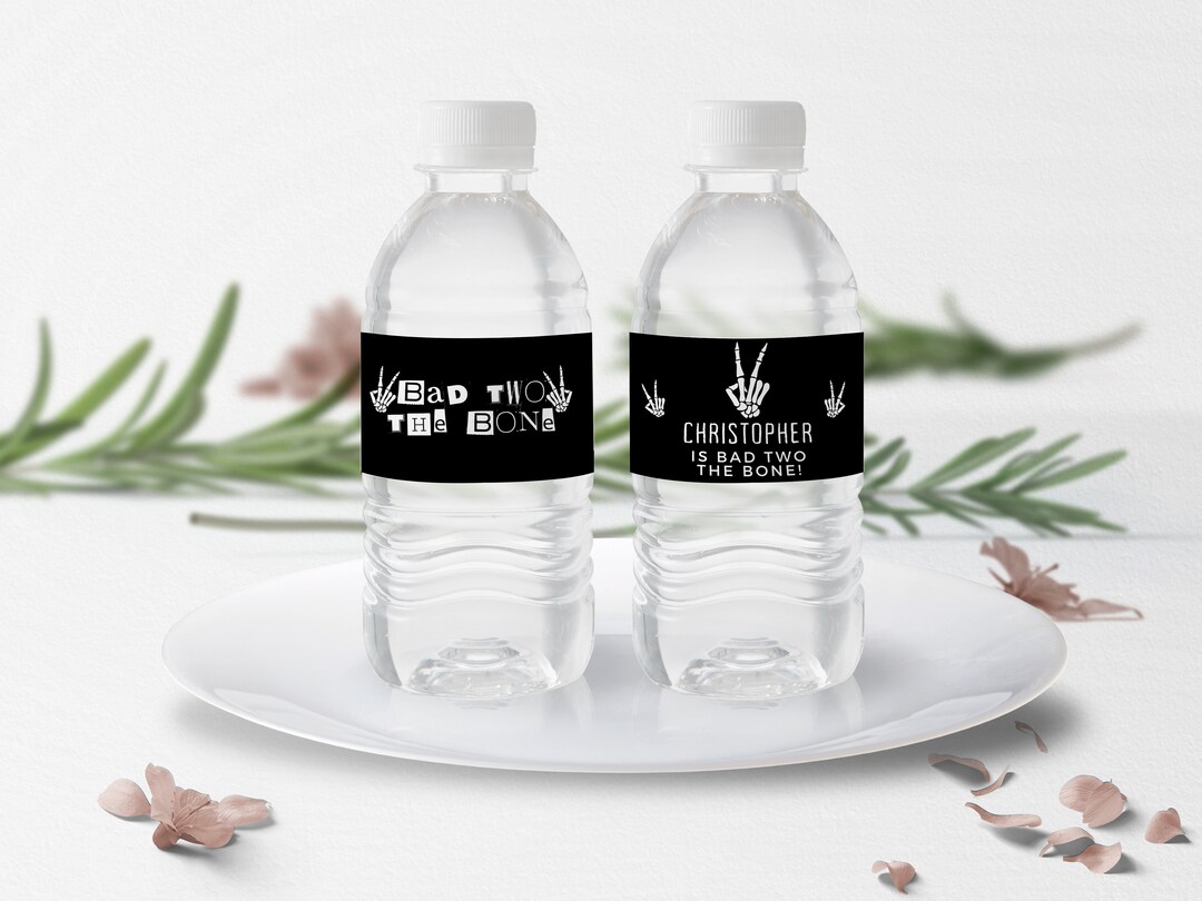 Bad Two the Bone Water Bottle Labels Editable Boys 2nd Skeleton
