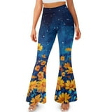 FKELYI Daisy Flower Print Bell Bottom Yoga Pants for Women Teen Girls